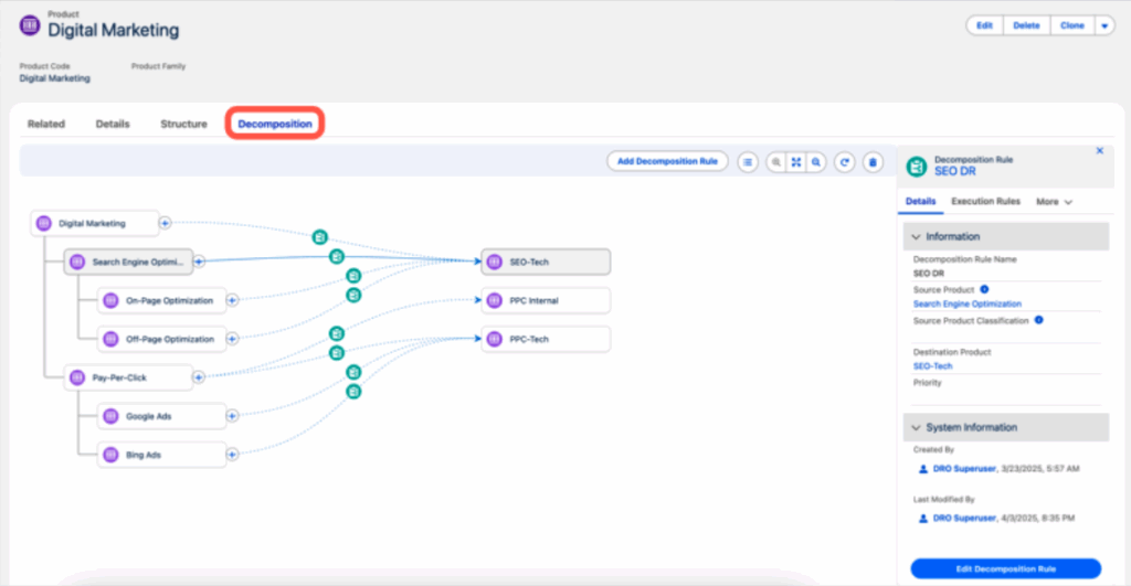 Dynamic Revenue Orchestrator (DRO)DRO now supports fulfillment plans from any object; not just Orders, but also Quotes, Cases, Service Requests, and even custom objects. Plus, there’s a new Decomposition Rules Workspace, offering a visual UI for rule configuration instead of record pages.