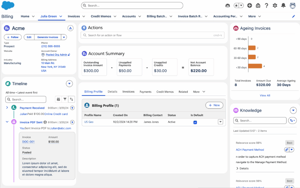 Complete Account Billing Information Summer ’25 also introduces a complete billing view at the Account level with aggregating invoices, billing schedules, profiles, and payments in one consolidated snapshot.